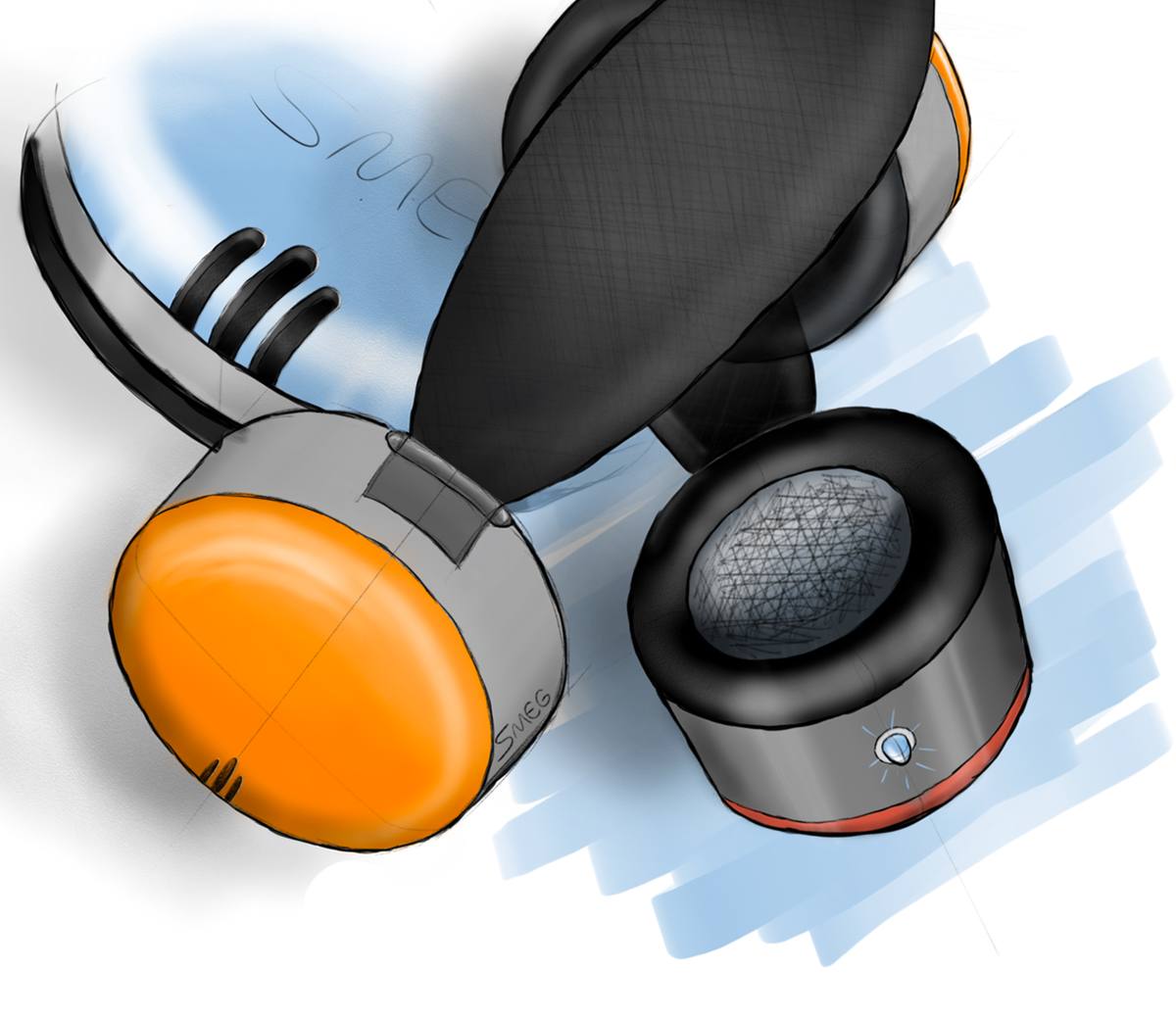 With inspiration from SMEG and exploration of multiple design tools the headphones GEMS was created. Beginning with analog sketches and moving on to digital with Autodesk Sketchbook. The look of the headphones got finalized in Photoshop and Illustrator where the logo GEMS was created as well.